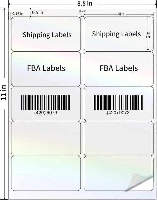 STARLIBOO Transparent Stickers Labels - 2" x 4" Clear Address Labels Mailing Stickers for Laser/Inkjet Printer 8.5"×11"- 20 Sheet (Clear Holographic)