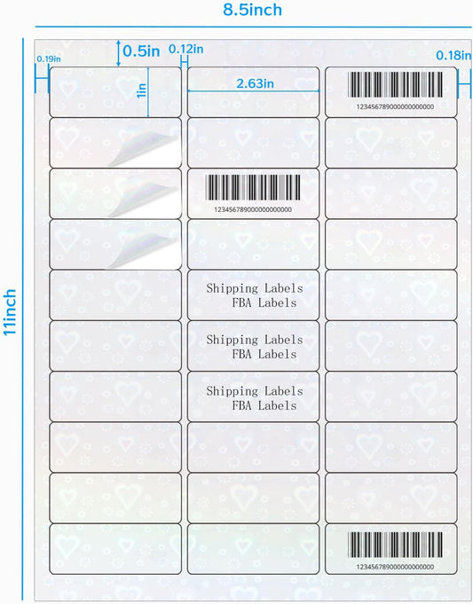 STARLIBOO Transparent Stickers Labels -1" x 2-5/8" Clear Address Labels Mailing Stickers for Laser/Inkjet Printer 8.5"×11"- 20 Sheet (Clear Holographic Heart)