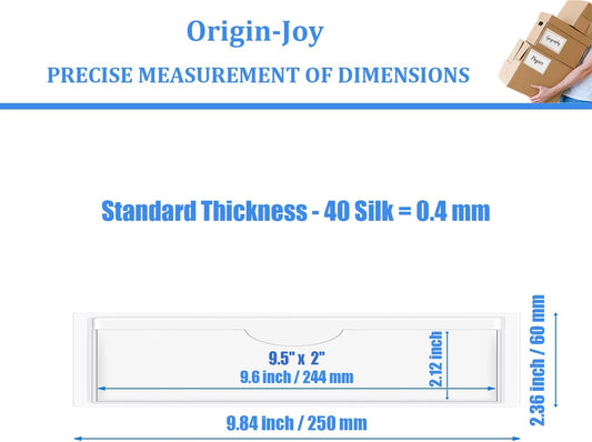 Origin-Joy 60 PCS Self Adhesive Index Card Pockets with Top Open, Clear Plastic Label Holder for Cards of Note, Library and Business, Adhesive Label Pockets & Card Holder (9.5 x 2 inch)