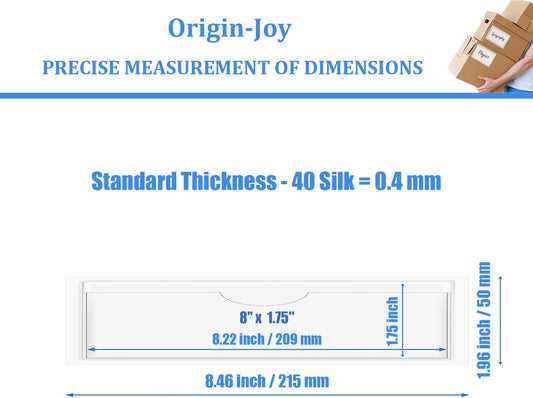 Origin-Joy 60 PCS Self Adhesive Index Card Pockets with Top Open, Clear Plastic Label Holder for Cards of Note, Library and Business, Adhesive Label Pockets & Card Holder (8 x 1.75 inch)