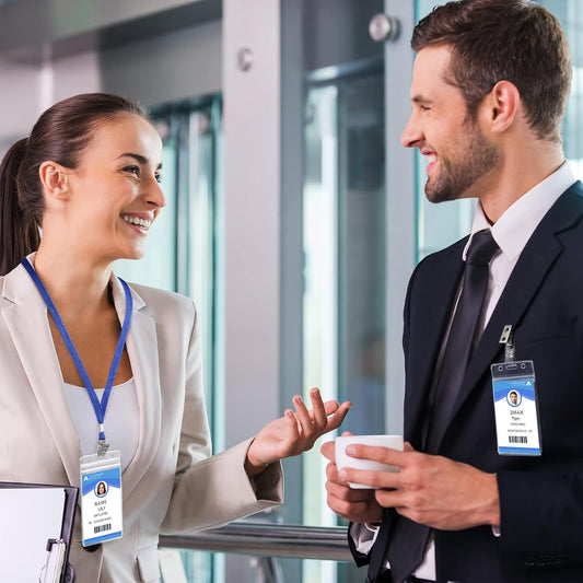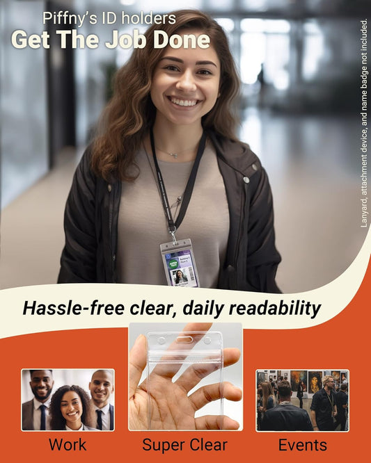 ID Badge Holder and Clips Extra Thick Clear Name Tag Card Holders Plastic Horizontal ID Badge Protector with Waterproof Resealable Zip