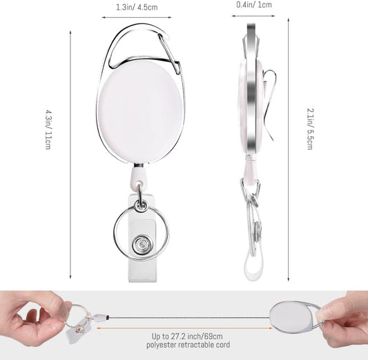 Retractable Badge Holder with Carabiner Reel Clip and Key Ring for ID Card Key Keychain Holders White 10 Pieces