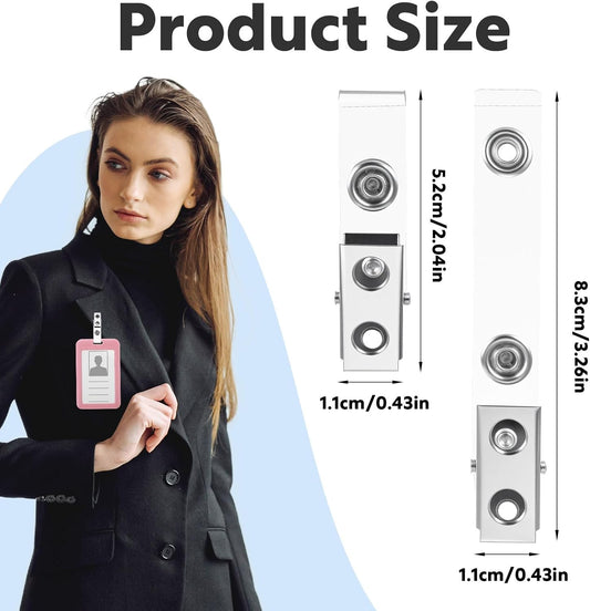 300 Pcs Metal Badge Clips with Clear PVC Straps – Double Hole ID Card Clips for Name Tags, Badge Holders & Office Use