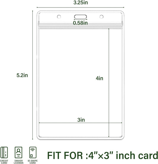 50 Pcs Vertical Clear ID Badge Holders, 4x3 Inch Waterproof PVC Plastic Badge Holders with Resealable Zip, Fits RFID/Proximity/Badge Swipe Cards, Credit Cards, Office, School, Events