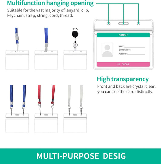 50 Pcs Horizontal ID Badge Holder, Clear Plastic Card Sleeve, Nurses Work Name Tag Holders, Key Cover Protector with Waterproof Zip for Lanyard, Fits Credit Size Cards