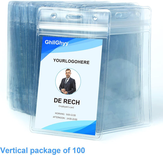100 Pack Extra Thick Name Badge Holders, Heavy Duty & Sealable Waterproof Vertical ID Badge Holders, Durable Clear PVC Plastic Badge Sleeve for Credit Card/Shcool Work Badge/Room Key/RFID