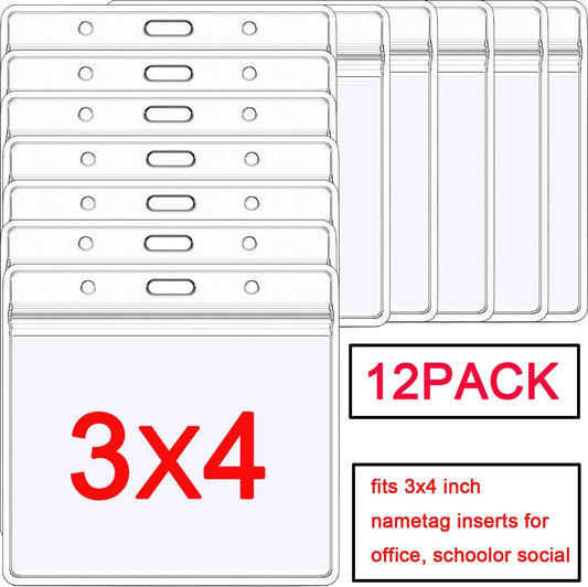 AMUU 12 Pack Horizontal Clear Badge Holder Card Holders 4 X 3 Large ID Card Holders Name Tag Fits 3x4 Inches