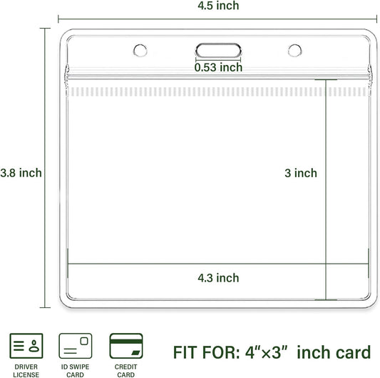 4x3 Inches Horizontal Badge Holder, Clear ID Card Holder with Waterproof Resealable Zip Type Protector, Badge Sleeve Fits Name Tag Holder/RFID/Proximity/Credit Card (200pcs-Horizontal)