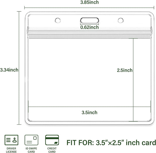 3.5x2.5 Inches Horizontal Badge Holder, Clear ID Card Holder with Waterproof Resealable Zip Type Protector, Badge Sleeve Fits Name Tag Holder/RFID/Proximity/Credit Card(Holders,50PCS)
