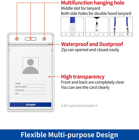 Vertical ID Badge Holders, 10 Pack, Clear Plastic Work Card Sleeve, Name Tag Holder Cover with Waterproof Resealable Zip Type for Nurses, Women, Medical Assistant, Fits Credit Size Cards