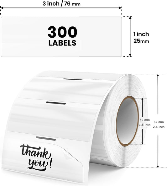 Transparent Thermal Labels 1 x 3 Inch Self-Adhesive Printer Clear Stickers Vinyl Waterproof Roll Decals Rectangle Postage Tags for Address Barcodes DIY Logo Business 300 PCS