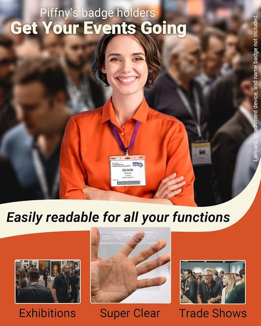 Clear ID Holder for Lanyard - ID Card Holder Waterproof (Inches, 4 x 3 Horizontal 100 Pack)
