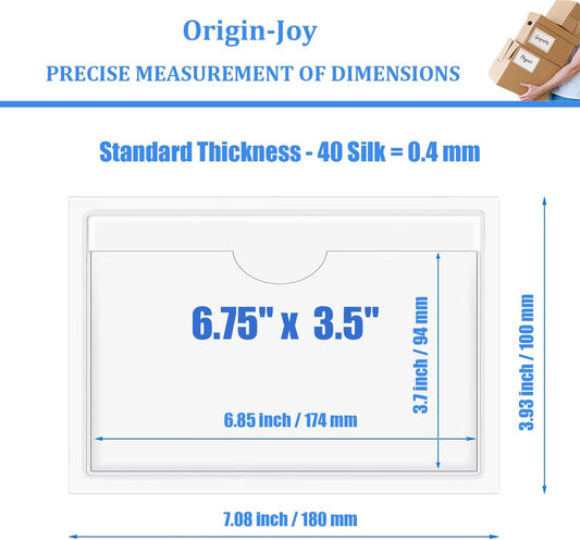Origin-Joy 25 PCS Self-Adhesive Index Label Pockets, Clear Plastic Peel & Stick Card Holders with Top Open for Loading (6.75 x 3.5 inch)