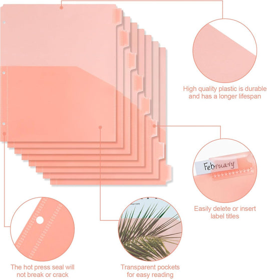 5 Set of 40 Pack A4 Plastic Sleeves Binder Index Dividers Pocket Dividers for 2/3/4 Ring Binder with 8 Tabs,Clear Plastic Sheet Protectors Paper Organizer for School Home Office