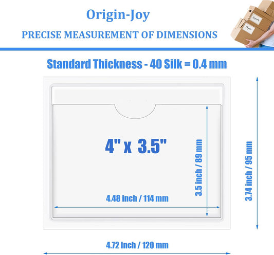Origin-Joy 35 PCS Self Adhesive Index Card Pockets with Top Open, Clear Plastic Label Holder for Cards of Note, Library and Business, Adhesive Label Pockets & Card Holder (4 x 4.75 inch)