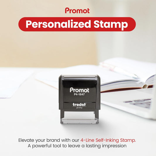 Promot Self Inking Stamp - Medium Custom Stamp for Name, Address, Office, or Business Use - Up to 4-Line Personalized Rubber Stamp - Customizable Font & Ink Color - Personalized Name Stamp