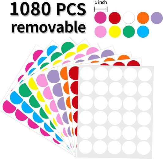 1 Inch Removable Color Code Dot Sticker Round Labels,Garage Sale Stickers Price Tags Label Blank Yard Sale Circle Dot Stickers Removable Writable Not Blurry (1080 Pack,9 Colors)