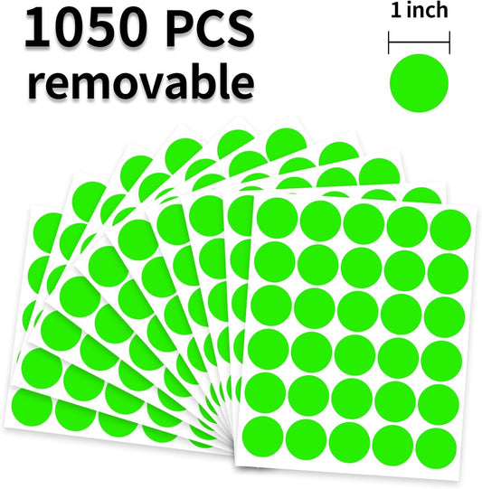 1 Inch Round Label Removable Color Code Dot Stickers,Garage Sale Sticker Price Tags Blank Yard Sale Circle Dot Stickers Writable (1050 Pack,Fluorescent Green)