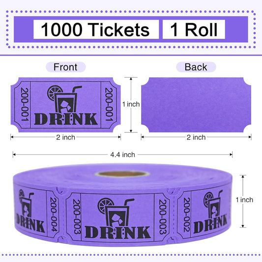ESSENTIAL 1000 Raffle Tickets Rolls, Drink Tickets Single Roll for Events, Leisure, Movie Watching, Entertainment, Class Reward & Prizes (Purple - 5 Color Selection)