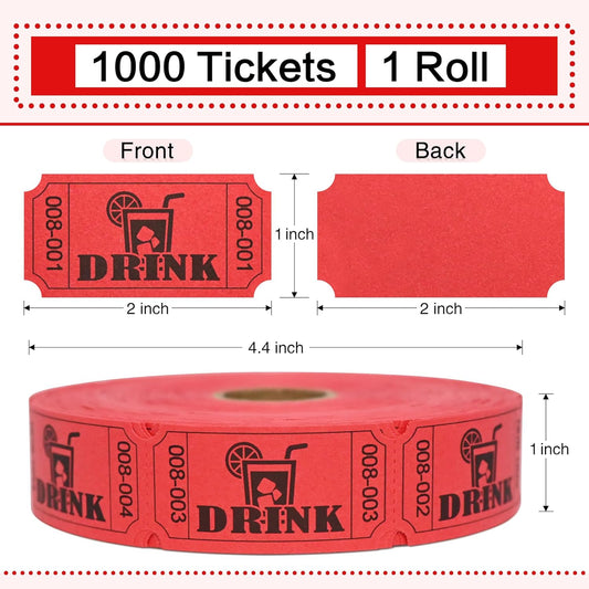 ESSENTIAL 1000 Raffle Tickets Rolls, Drink Tickets Single Roll for Events, Leisure, Movie Watching, Entertainment, Class Reward & Prizes (Red - 5 Color Selection)