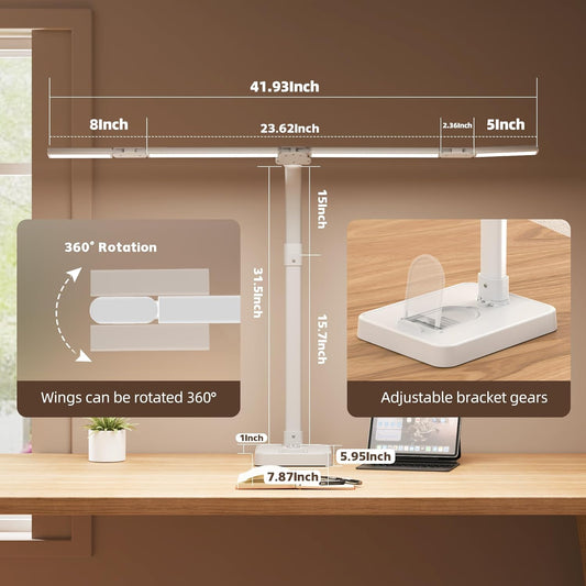 LED Desk Lamp, 31.5'' Wide Double Head Desk Lamps for Home Office, Dimmable 25 Lighting Modes 16W 1800lm Bright Desk Lighting, Eye Caring Architect Table Lamp for Workbench Monitor Study, White