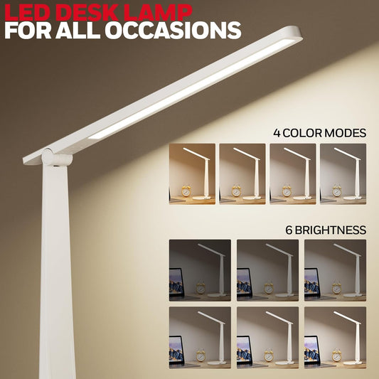 LED Desk Lamp for Home Office, 41.5" White Clip on Architect Desk Lamp with Clamp, 24W Adjustable Dimmable Bright Swing Arm Eye Care LED Table Light Clamp on Office Lighting