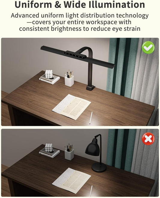 LED Desk Lamp with Clamp, 24W Ultra Architect Desk Lamp for Home Office, Stepless Dimming & Adjustable Gooseneck, Eye-Caring Light with USB Adapter for Reading, Study, Multi-Screen Setup (Black)