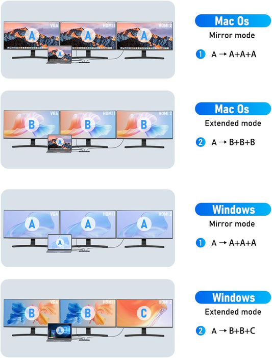 Triple Monitor Docking Station, 14-in-1 USB C Hub with DP 8K@30Hz/4K@144Hz, Dual HDMI 4K@60Hz, 100W PD, 7 USB Ports, SD/TF Card Reader, Gigabit Ethernet for MacBook & Windows Laptop