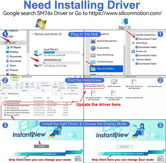 LIONWEI USB 3.0 to Dual HDMI Docking Station for Windows & macOS, USB C Adapter 2 Monitor Splitter for MacBook Pro/Air/M1/M2/Dell/HP/Lenovo/Surface