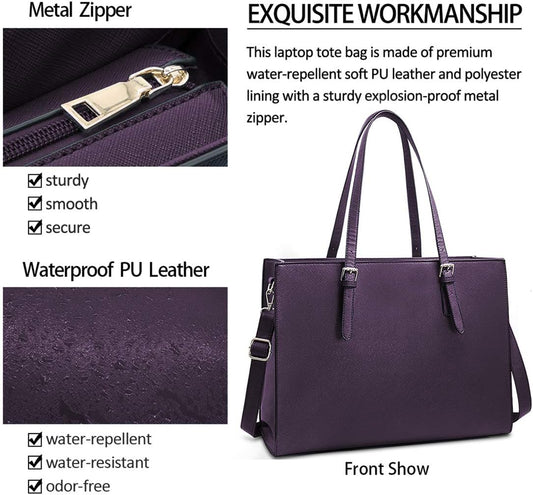 Laptop Bag for Women Waterproof Lightweight Leather 15.6 Inch Computer Tote Bag Business Office Briefcase Large Capacity Handbag Shoulder Bag Professional Office Work Bag Dark Purple