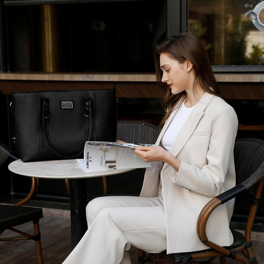 Laptop Bag for Women Waterproof Lightweight Leather 15.6 Inch Computer Tote Bag Business Office Briefcase Large Capacity Handbag Shoulder Bag Professional Office Work Bag
