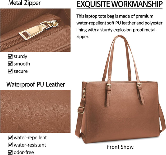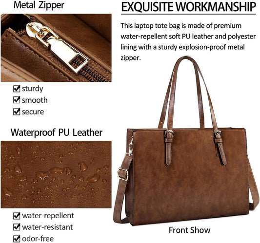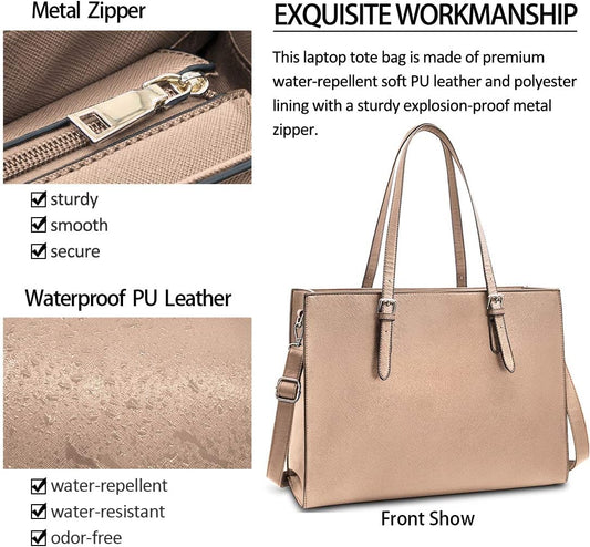 Laptop Bag for Women Waterproof Lightweight Leather 15.6 Inch Computer Tote Bag Business Office Briefcase Large Capacity Handbag Shoulder Bag Professional Office Work Bag