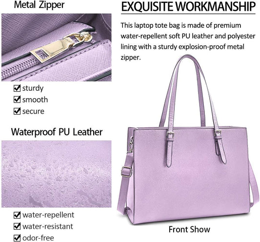 Laptop Bag for Women Waterproof Lightweight Leather 15.6 Inch Computer Tote Bag Business Office Briefcase Large Capacity Handbag Shoulder Bag Professional Office Work Bag Purple