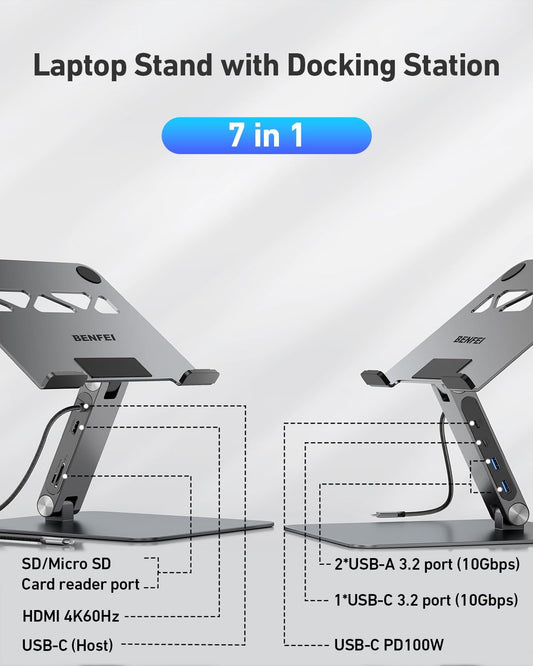 BENFEI Laptop Stand with USB C 7in1 Docking Station,HDMI 4K@60Hz,1*SD 1*Micro SD,100W Power Delivery,10Gbps 1*USB C 3.2 and 2*USB A 3.2 Compatible with MacBook Pro/Air, iPad Pro, XPS, Thinkpad