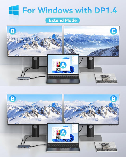 USB C Docking Station Dual Monitor for Dell XPS/HP/Lenovo/Surface, 15 in 1 USB-C Hub 3 Monitor Adapter, Dock with 8K DisplayPort, 2 HDMI 4K@60Hz, 6 USB A/C, 100W PD, Ethernet, SD/MicroSD