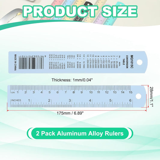 PATIKIL 15cm/6" Metal Ruler, 2 Pack Aluminum Alloy Rulers with Centimeters, Millimeters, Inches and Conversion Table Straight Edge Ruler for Writing Machinist Drafting, Blue