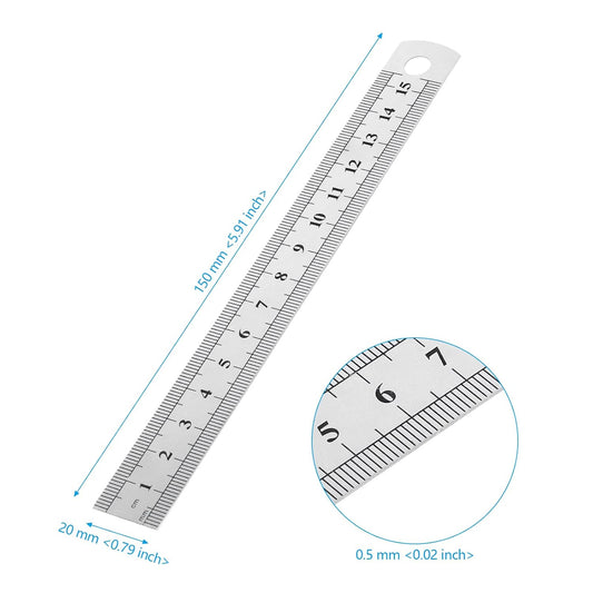 6 Inch Metal Ruler Set Stainless Steel Straight Edge Rules with Inch/Metric Scale, 10 Pack