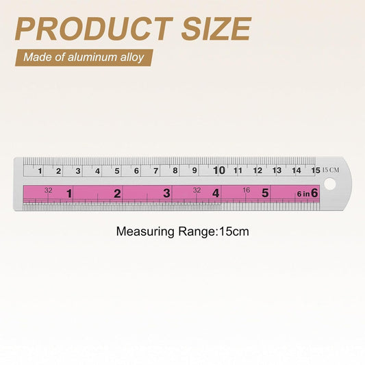HARFINGTON 2pcs Metal Straight Ruler 15cm Metric SAE Aluminum Alloy Measuring Rulers Scale Tools with Hole for Measure Study Reading Classroom Office, Pink