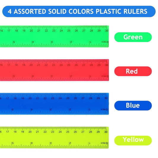 Zonon 500 Pcs 12 Inch Plastic Ruler Assorted Colors Rulers with Centimeters Millimeter and Inches Shatterproof Straightedge Bulk for Classroom School Home Office Kids