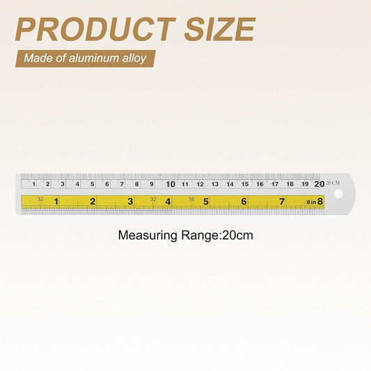 HARFINGTON 4pcs Metal Straight Ruler 20cm Metric SAE Aluminum Alloy Measuring Rulers Scale Tool with Hole for Measure Study Reading Classroom Office, Yellow
