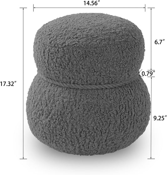 HIGOGOGO Round Stuffed Pouf Ottoman, Long Faux Fur Poufs with Foam Chunk Filling, Fluffy and Furry Pouf Foot Stool Storage Ottoman, 20 X 15 Floor Poufs Foot Rest for Living Room, Grey