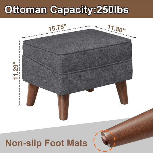 Small Footstool Ottoman with Storage, Ottoman Foot Rest, Modern Foot Stool with Adjustable Lid and Sturdy Wood Legs for Living Room, Bedroom, Couch, Enterway, Light Gray