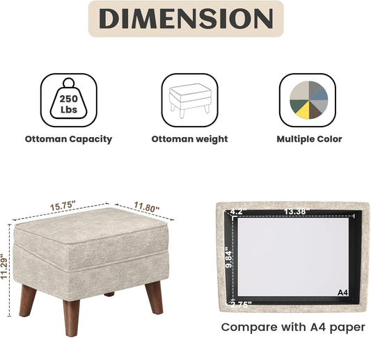 Ottoman Foot Rest, Small Footstool Ottoman with Storage, Modern Foot Stool with Adjustable Lid and Sturdy Wood Legs for Living Room, Bedroom, Couch, Enterway (Beige)