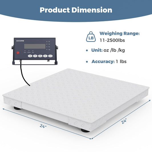 24"x24" Industrial Floor Scale, Precision Pallet Scale with Digital Indicator, Heavy Duty Weighing Scale for Floor Bench Office Weight Weighing, 2500 lb x 1 lb, Grey
