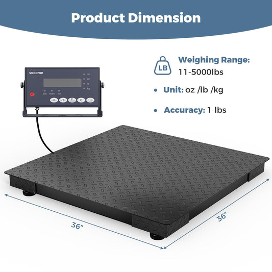 36"x36" Industrial Floor Scale, Heavy-Duty Warehouse Scale with Digital Indicator, Accurate Pallet Scale for Postal Luggage Shipping Mailing Weighing, 5000 lb x 1 lb, Black
