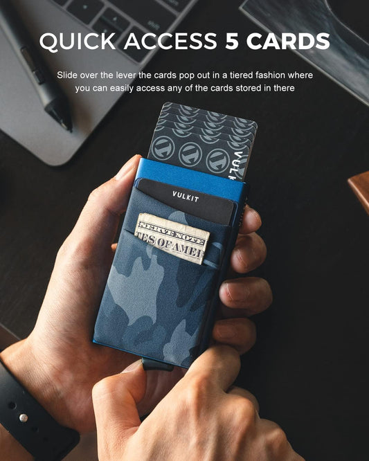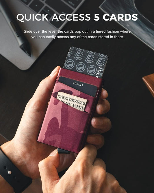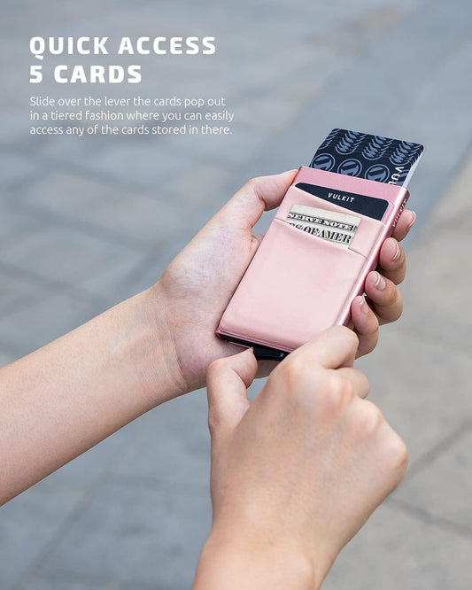 VULKIT Card Holder with Money Pocket Pop Up Wallet RFID Blocking Slim Metal Bank Card Case Holds 5 Cards and Notes