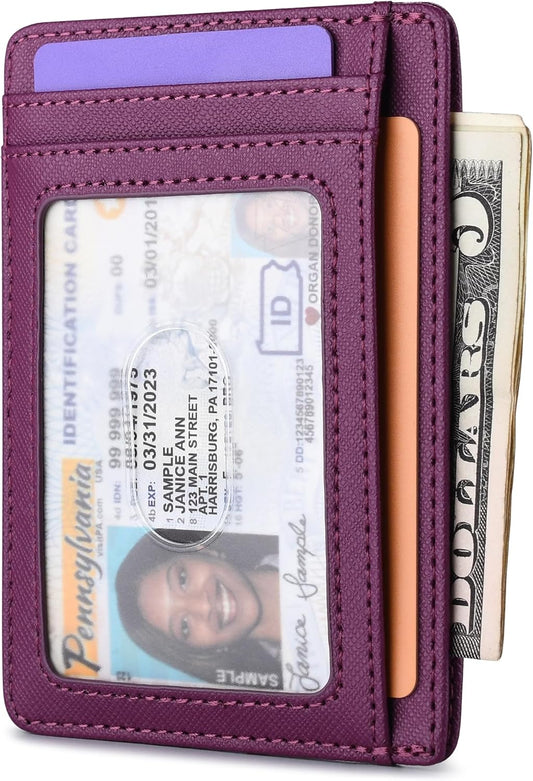 Buffway Slim Minimalist Front Pocket RFID Blocking Leather Wallets for Men and Women - Cross Purple
