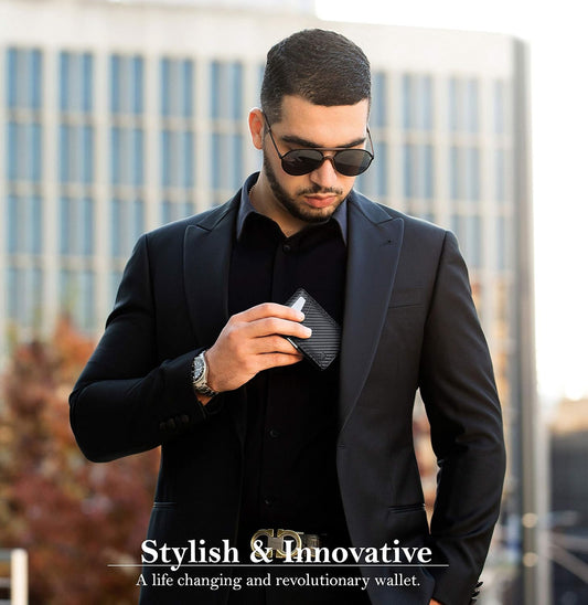 Wallet for Men Wallet with Slim Pop Up Card Holder 9-13 Cards, Bifold Minimalist Smart Wallet RFID Blocking Credit Card Holder with ID Window & Stretchable Cash Slot Compact Metal Aluminum Card Case