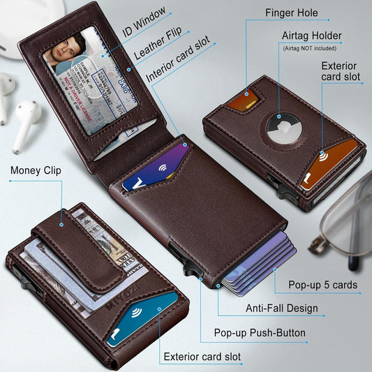 Airtag Wallet for Men, Slim Pop Up Credit Card Holder RFID Blocking Mens Minimalist wallet for 7-9 Cards ID Window, with Gift Box