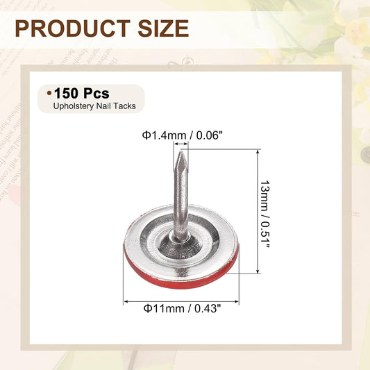 uxcell 150Pcs Upholstery Tacks, 11mmx13mm Flat Head Thumb Tack Decorative Furniture Nails Push Pins for Furniture Sofa Headboards, Red
